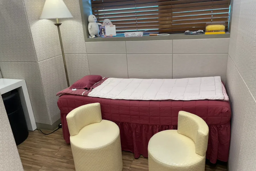 注射後施術室へ移動し、施術台に横になります。(施術室は撮影禁止のため写真なし)