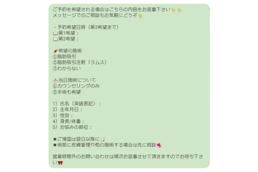 365MCは公式LINEで事前相談ができ、施術内容・ダウンタイム・日程などを日本語でやり取りできます。