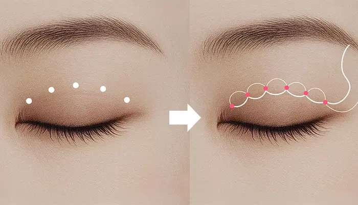 埋没法は、まぶたの内側を糸で留めて二重ラインを形成する施術です。