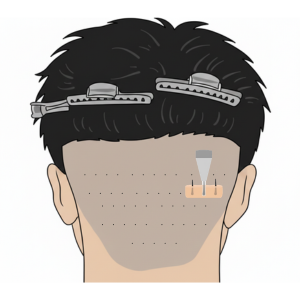 FUE法(Follicular Unit Extraction)は、後頭部の毛包(毛根を含む組織)を1株ずつくり抜いて採取する方法です。